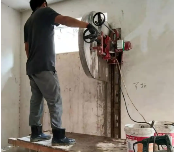 3. 钻孔和切割:使用钻孔机在需要拆除的区域周围钻孔,将金刚石绳锯或环形锯固定在钻孔中。然后使用设备对墙体进行切割,切割线应尽量平行于墙体表面。