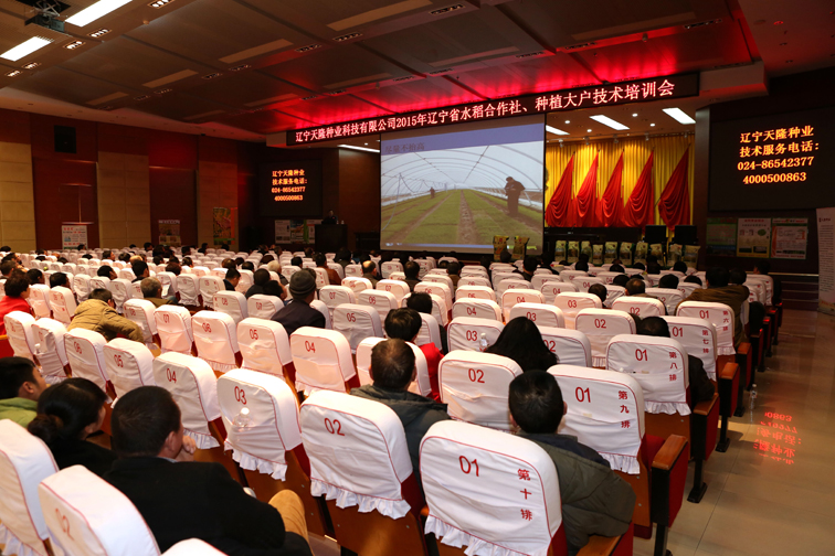 2015年3月2日,辽宁天隆种业科技有限公司邀请辽宁省各地区水稻种植专业合作社代表及种植大户120余人,参加了在沈阳市苏家屯区区委党校报告厅举办的水稻种植技术培训会。