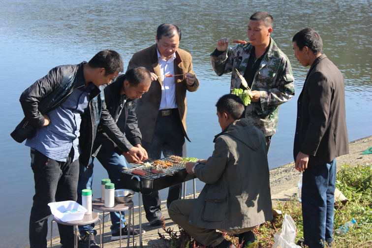 青山绿水,阳光明媚。公司员工与淮阴工学院的实习生们在湖边进行了烧烤、垂钓、划船等活动,员工们积极参与,乐在其中。