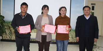 在31日下午的全体员工大会上,公司隆重表彰了与公司风雨同舟、携手拼搏了5年以上的老员工和公司2012年度优秀共产党员。杨总代表公司与各部门、各子公司负责人签署了《2013年经营管理目标责任书》。