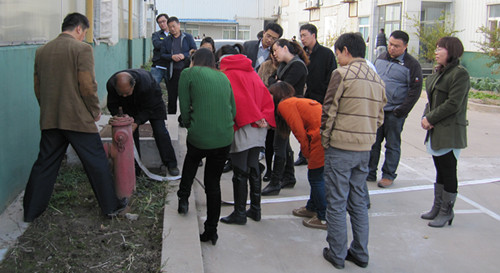 在消防演练现场,员工被分成两个小组,在教练的指导下,逐一对灭火器、消防栓和消防带等器材的使用进行观摩、演练,由生疏到熟练,现场气氛异常热烈,达到了培训、演练的目的。