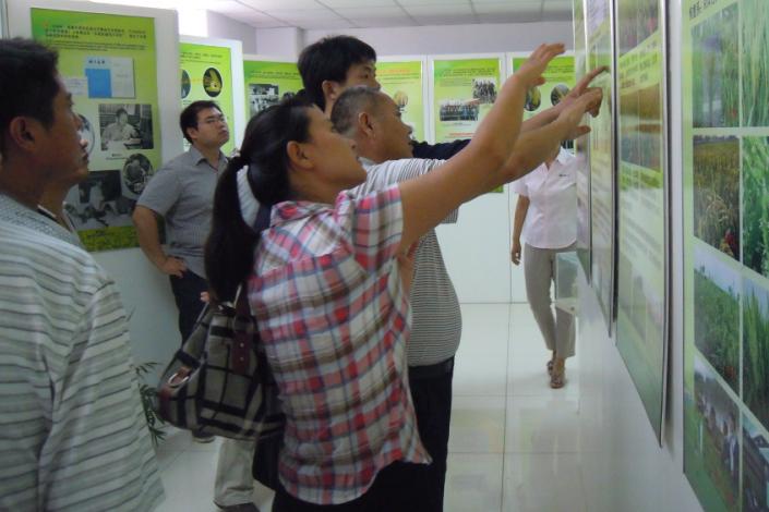 在公司三楼科技展厅,科研部人员为客人介绍了杂交水稻的发展历史、现状和未来以及我公司在杂交粳稻领域取得的一系列科研成果。通过介绍,各经销商对公司的科研实力有了全面的认识,更加认可了公司的发展理念。